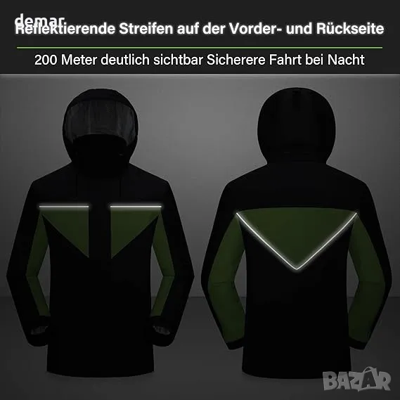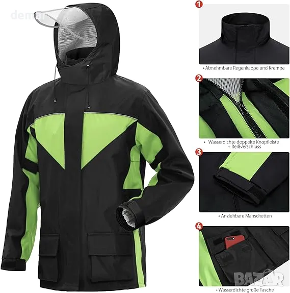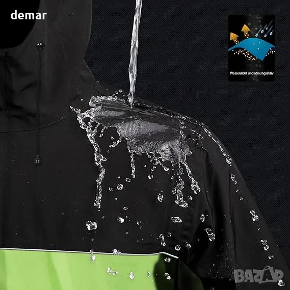 Проектиран с високотехнологична нано оксфорд 500D водоустойчива материя, този дъждобран предлага превъзходна водоустойчивост и издръжливост, което го прави идеален за употреба на открито. Устойчив е на надраскване и повреди, осигурявайки дълготрайно износване. Снабден с два големи водоустойчиви предни джоба за удобство, включва и капак с кука и примка за допълнителна защита. Светлоотразителните ленти на гърдите и гърба подобряват видимостта при слаба светлина. Прозрачният, свалящ се ръб с регулируема система за затягане с кука и примка позволява персонализиране за различни среди.