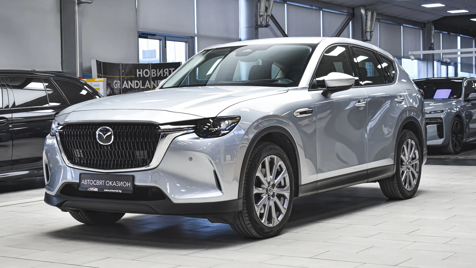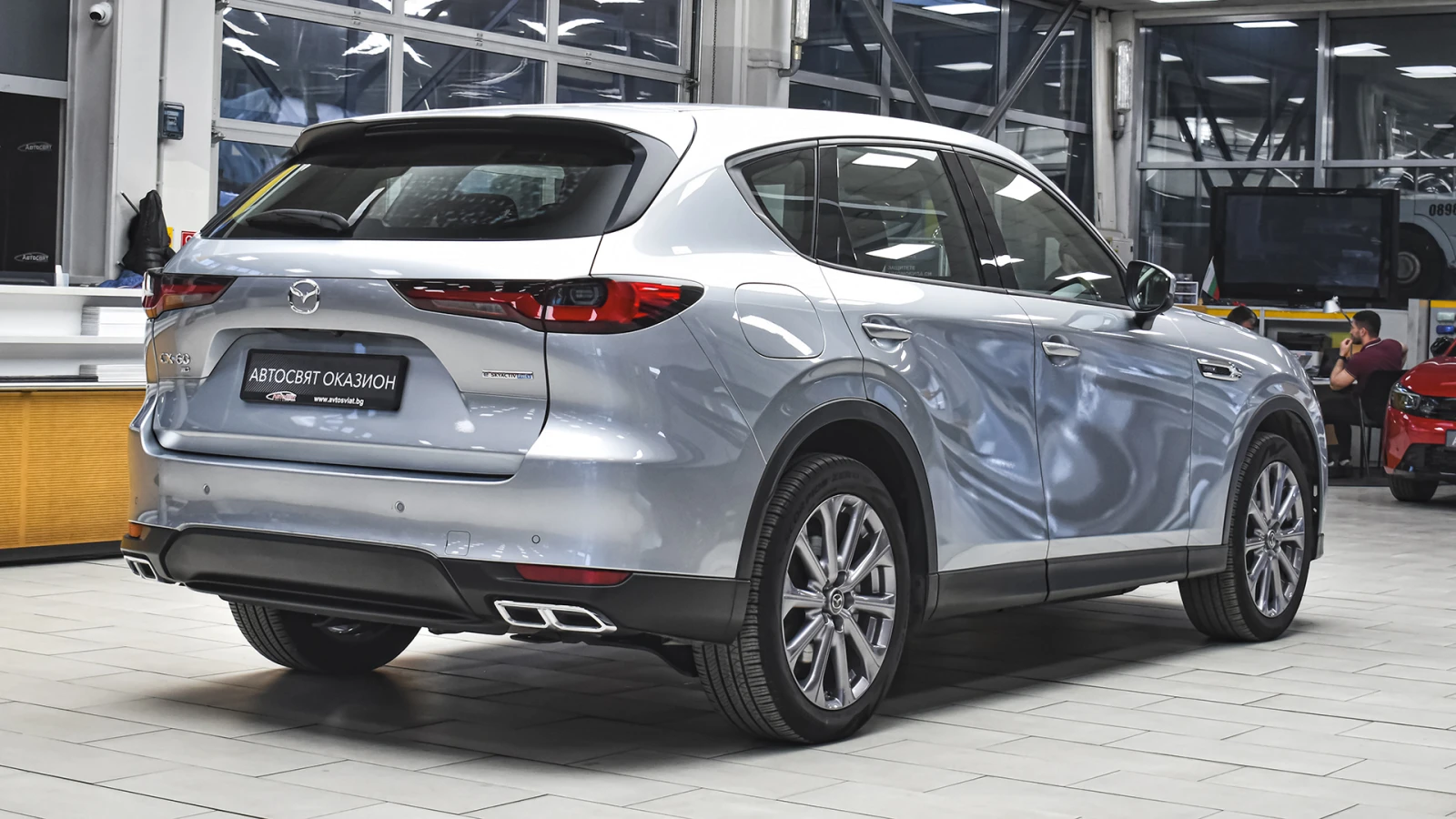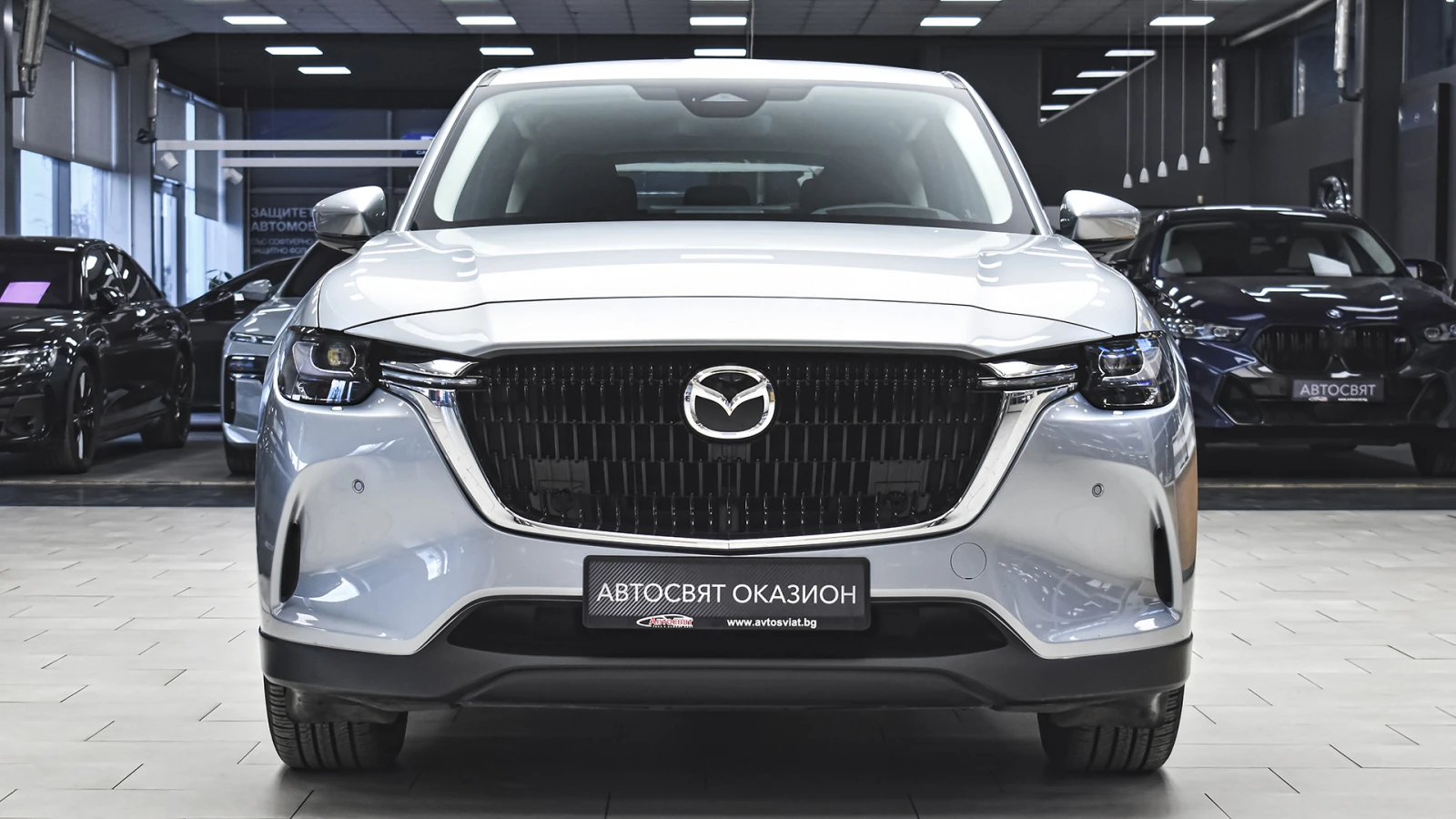 Автосвят ООД - официален представител на Opel и Mazda, предлага на Вашето внимание проверен автомобил Mazda CX-60 2. 5 e-SKYACTIV PHEV EXCLUSIVE LINE 4x4 Automatic Предимства: - 12 месеца или 20 000 км пробег гаранция; - безплатна пътна помощ за Р България в рамките на гаранцията; - напълно обслужен. Допълнителни услуги: - лизинг; - сътрудничество при регистрация; - възможност за обратно изкупуване; - посредничество при застраховане; - посредничество при завеждане на щети при застрахователя. Цвят - Sonic Silver Metallic Пробег с едно зареждане на батерията 60 км. (WLTP) Капацитет на батерията 17. 8 kWh 20 алуминиеви джанти Дизайнерски предни и задни светлини, радиаторна решетка черен пиано лак Арматурно табло, странична тапицерия на вратите: кожа Leatherette Регулиране на седалката на водача (8 посоки) Интелигентно отключване/заключване без ключ Изходи за вентилация за задната седалка Проекционен цветен дисплей върху стъклото пред погледа на водача HUD Амбиентно осветление отпред за краката Осветление на жабката Предна светлина на горната конзола Нагреватели в предното стъкло за размразяване в зоната на чистачките Подгряване на волана Подгряване на предните седалки USB (2 отпред, тип С+2 отзад, тип С) и гнездо 12V (опред и в багажника) LED фарове с устойчивост за измиване Kodo дизайн LED мигачи Предни LED дневни светлини Странични огледала с интегрирани LED мигачи Странични огледала - в цвета на купето Задни комбинирани светлини - LED Предна радиаторна решетка - черна Стъкла тонирани 25% Заден спойлер Странични огледала - електрически регулируеми, с отопление, автоматично сгъване Вградена антена в задното стъкло Скрити предни чистачки с интегрирана миеща дюза в рамото на чистачката Седалки с 3D дишаща текстилна тапицерия Арматурно табло с меко покритие Регулируема седалка на водача (общо 6 направления) Регулируема седалка на пътника (общо с 6 направления) 12 TFT цветен централен дисплей със сензорно управление само в спряно положение, гласово управление Електрически стъкла - предни и задни с функция с едно докосване Волан облицован с естествена кожа Монтирани на волана аудио и Bluetooth контроли Скоростен лост облицован с естествена кожа Задни седалки - система за сгъване на облегалките на седалките в съотношение 40: 20: 40 Климатик автоматичен - двузонов контрол на температурата със задни въздуховоди HMI (Human-Machine Interface) командно устройство за управление на системите Преден централен подлакътник Бутон за стартиране/спиране на двигателя 12 разширено информационно табло интегрирано в уредите пред водача Интелигентен ключ за отключване/заключване без ключ LED интериорно осветление Щора, закриваща багажното отделение 2 LED светлини в багажното отделение LED осветление за огледалата на сенниците Бордови компютър Автоматичен круиз контрол Пера за превключване на скоростите на волана Дистанционно заключване на вратите ADL (автоматично заключване на вратите с избор на режим на заключване/отключване) Електронна ръчна спирачка + автоматично задържане с HDP (хидравлична динамична ръчна спирачка) Автоматично включване на светлините и чистачките My Drive селектор за избор на задвижване Sport/Normal/Offroad/EV AC зареждане (2-фазно 7, 2 kW) Дистанционно предварителна загряване/охлаждане през телефон и приложението MyMazda ICE звуков емулатор за звук при електрическо задвижване Кабел за зареждане на обществена станция Мобилна станция за зареждане в с