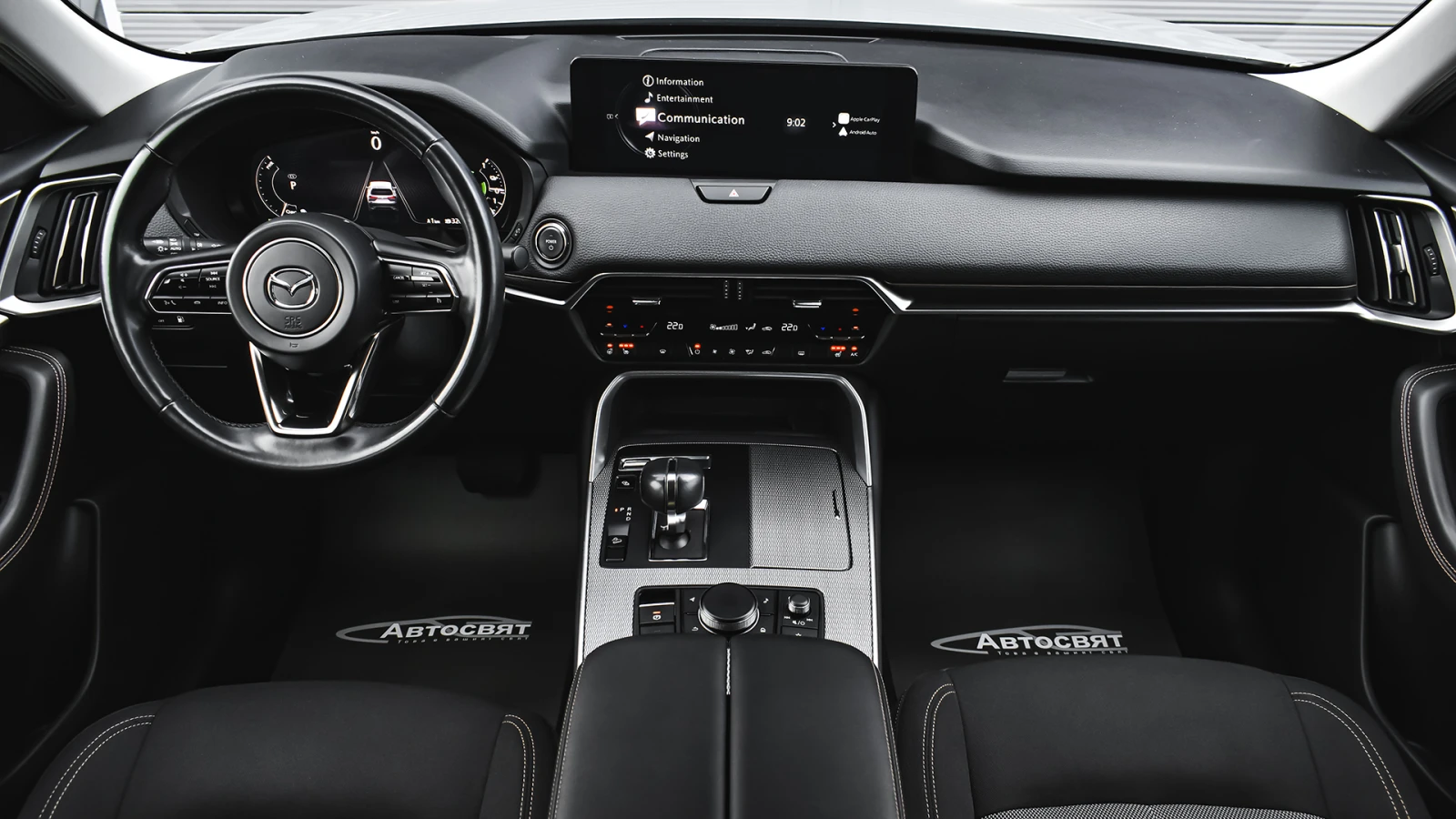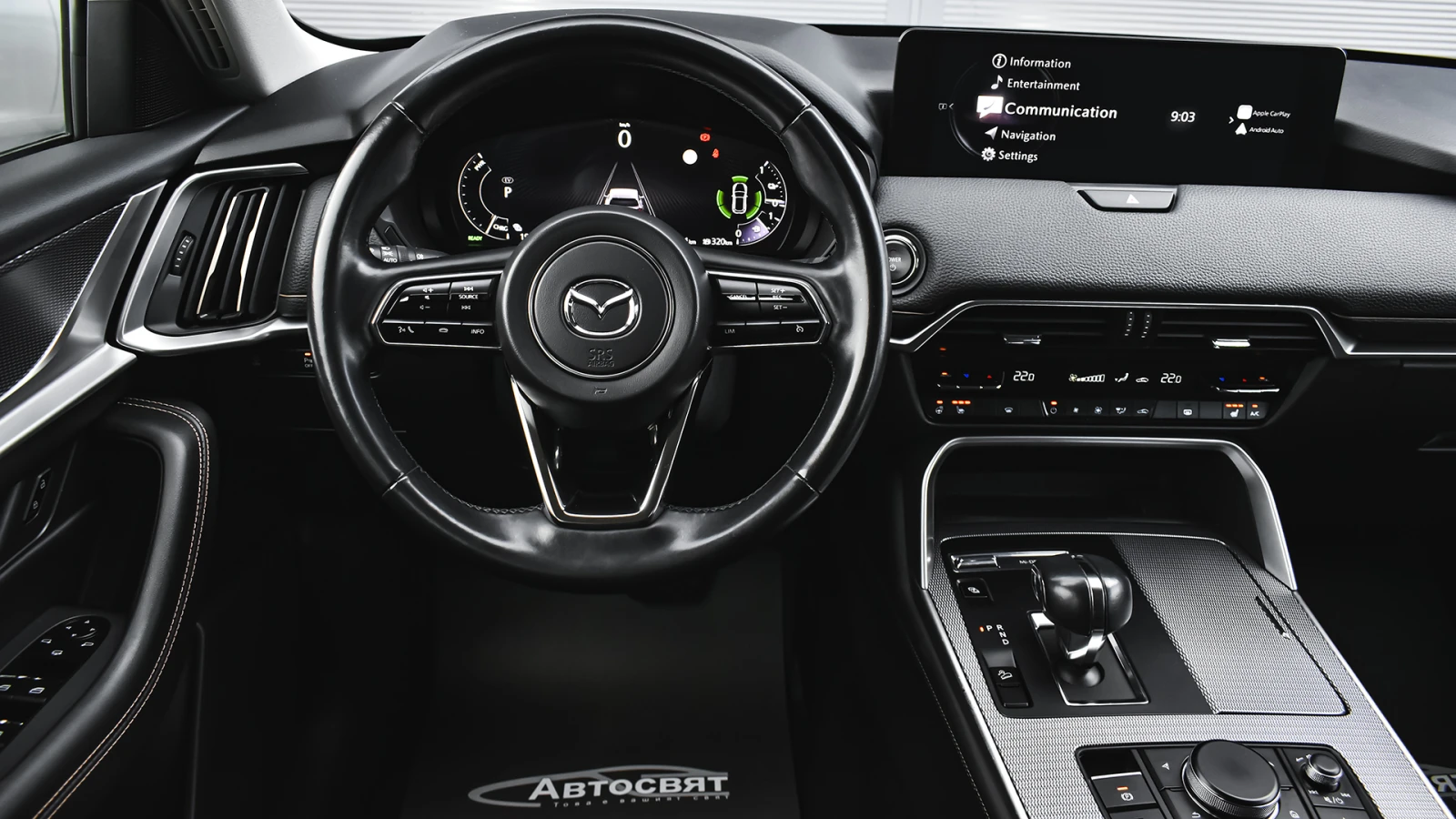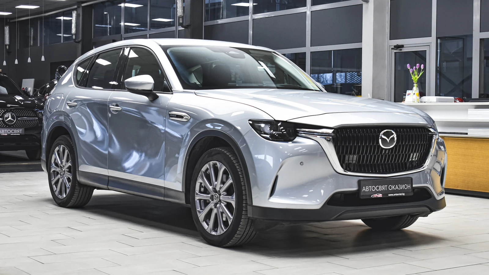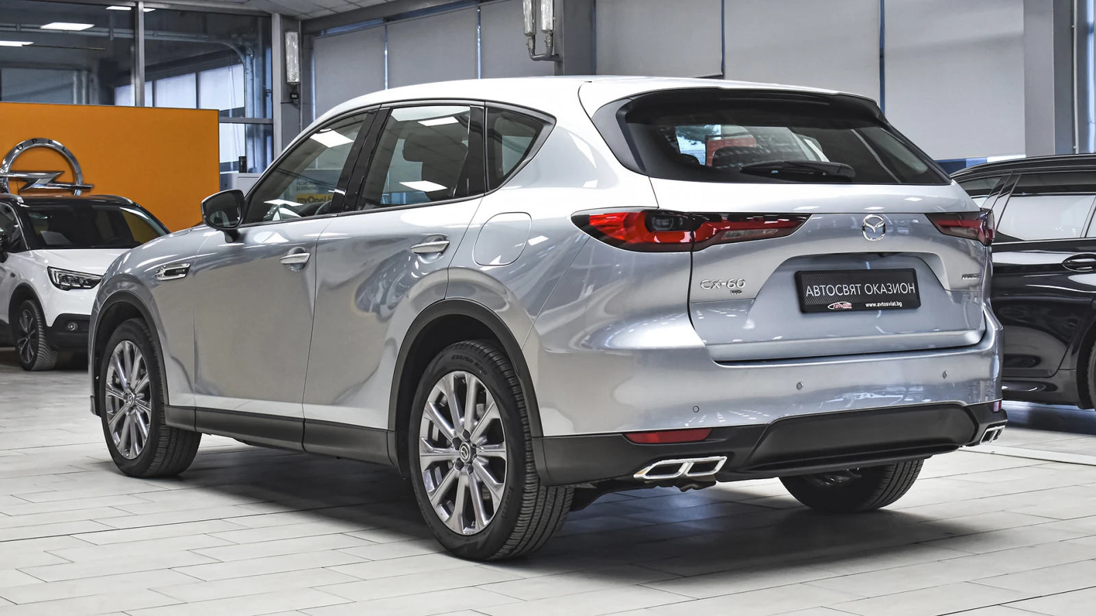 Автосвят ООД - официален представител на Opel и Mazda, предлага на Вашето внимание проверен автомобил Mazda CX-60 2. 5 e-SKYACTIV PHEV EXCLUSIVE LINE 4x4 Automatic Предимства: - 12 месеца или 20 000 км пробег гаранция; - безплатна пътна помощ за Р България в рамките на гаранцията; - напълно обслужен. Допълнителни услуги: - лизинг; - сътрудничество при регистрация; - възможност за обратно изкупуване; - посредничество при застраховане; - посредничество при завеждане на щети при застрахователя. Цвят - Sonic Silver Metallic Пробег с едно зареждане на батерията 60 км. (WLTP) Капацитет на батерията 17. 8 kWh 20 алуминиеви джанти Дизайнерски предни и задни светлини, радиаторна решетка черен пиано лак Арматурно табло, странична тапицерия на вратите: кожа Leatherette Регулиране на седалката на водача (8 посоки) Интелигентно отключване/заключване без ключ Изходи за вентилация за задната седалка Проекционен цветен дисплей върху стъклото пред погледа на водача HUD Амбиентно осветление отпред за краката Осветление на жабката Предна светлина на горната конзола Нагреватели в предното стъкло за размразяване в зоната на чистачките Подгряване на волана Подгряване на предните седалки USB (2 отпред, тип С+2 отзад, тип С) и гнездо 12V (опред и в багажника) LED фарове с устойчивост за измиване Kodo дизайн LED мигачи Предни LED дневни светлини Странични огледала с интегрирани LED мигачи Странични огледала - в цвета на купето Задни комбинирани светлини - LED Предна радиаторна решетка - черна Стъкла тонирани 25% Заден спойлер Странични огледала - електрически регулируеми, с отопление, автоматично сгъване Вградена антена в задното стъкло Скрити предни чистачки с интегрирана миеща дюза в рамото на чистачката Седалки с 3D дишаща текстилна тапицерия Арматурно табло с меко покритие Регулируема седалка на водача (общо 6 направления) Регулируема седалка на пътника (общо с 6 направления) 12 TFT цветен централен дисплей със сензорно управление само в спряно положение, гласово управление Електрически стъкла - предни и задни с функция с едно докосване Волан облицован с естествена кожа Монтирани на волана аудио и Bluetooth контроли Скоростен лост облицован с естествена кожа Задни седалки - система за сгъване на облегалките на седалките в съотношение 40: 20: 40 Климатик автоматичен - двузонов контрол на температурата със задни въздуховоди HMI (Human-Machine Interface) командно устройство за управление на системите Преден централен подлакътник Бутон за стартиране/спиране на двигателя 12 разширено информационно табло интегрирано в уредите пред водача Интелигентен ключ за отключване/заключване без ключ LED интериорно осветление Щора, закриваща багажното отделение 2 LED светлини в багажното отделение LED осветление за огледалата на сенниците Бордови компютър Автоматичен круиз контрол Пера за превключване на скоростите на волана Дистанционно заключване на вратите ADL (автоматично заключване на вратите с избор на режим на заключване/отключване) Електронна ръчна спирачка + автоматично задържане с HDP (хидравлична динамична ръчна спирачка) Автоматично включване на светлините и чистачките My Drive селектор за избор на задвижване Sport/Normal/Offroad/EV AC зареждане (2-фазно 7, 2 kW) Дистанционно предварителна загряване/охлаждане през телефон и приложението MyMazda ICE звуков емулатор за звук при електрическо задвижване Кабел за зареждане на обществена станция Мобилна станция за зареждане в с