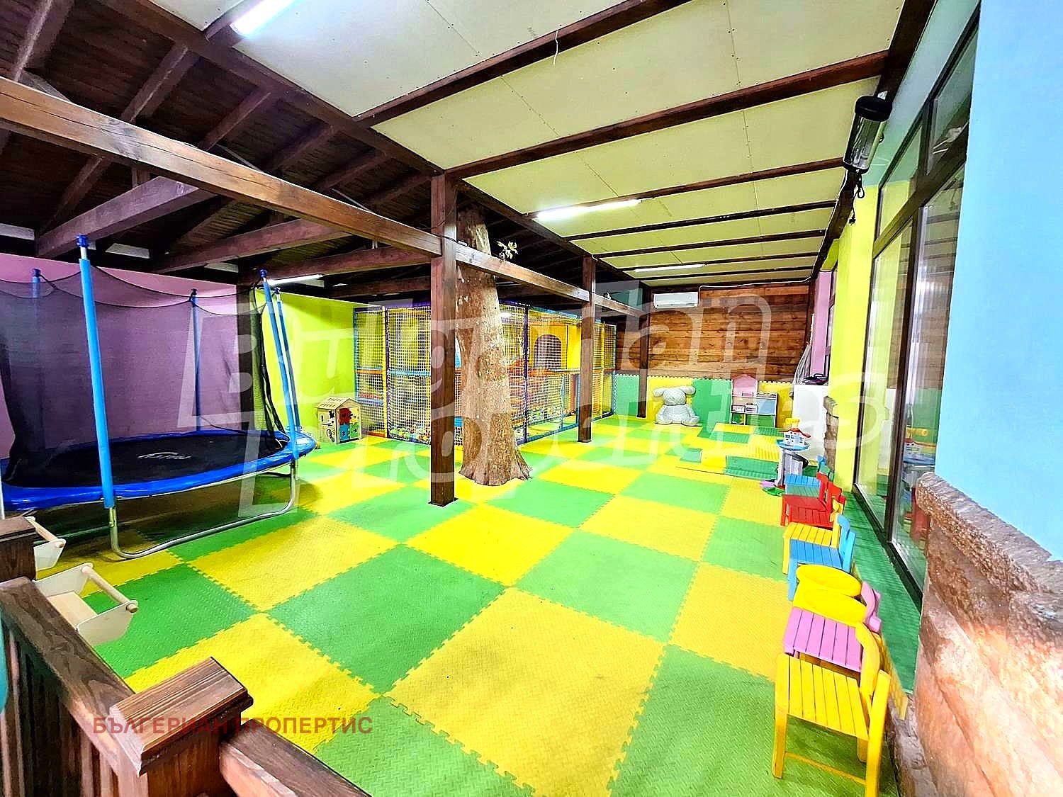 Сградата е сплощ над 2000 кв.м. Разполага с хотелска част и заведения с детски кът, напълно оборудвани и работещи. Има помещения, които могат да бъдат преустроени според вашите нужди - допълнителни хотелски стаи, заведения или нещо друго. Имотът може да бъде закупен с инвестиционна цел, преустроен, отдаван под наем. Предлага се за продажба с обзавеждането и оборудване от снимките.