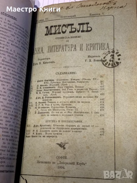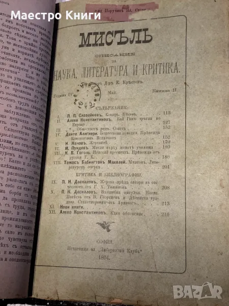 Списание "Мисъль" ("Мисъл") 1894-1895г. Книги 1,2,5,7,8,9,10 → Обява 49496903