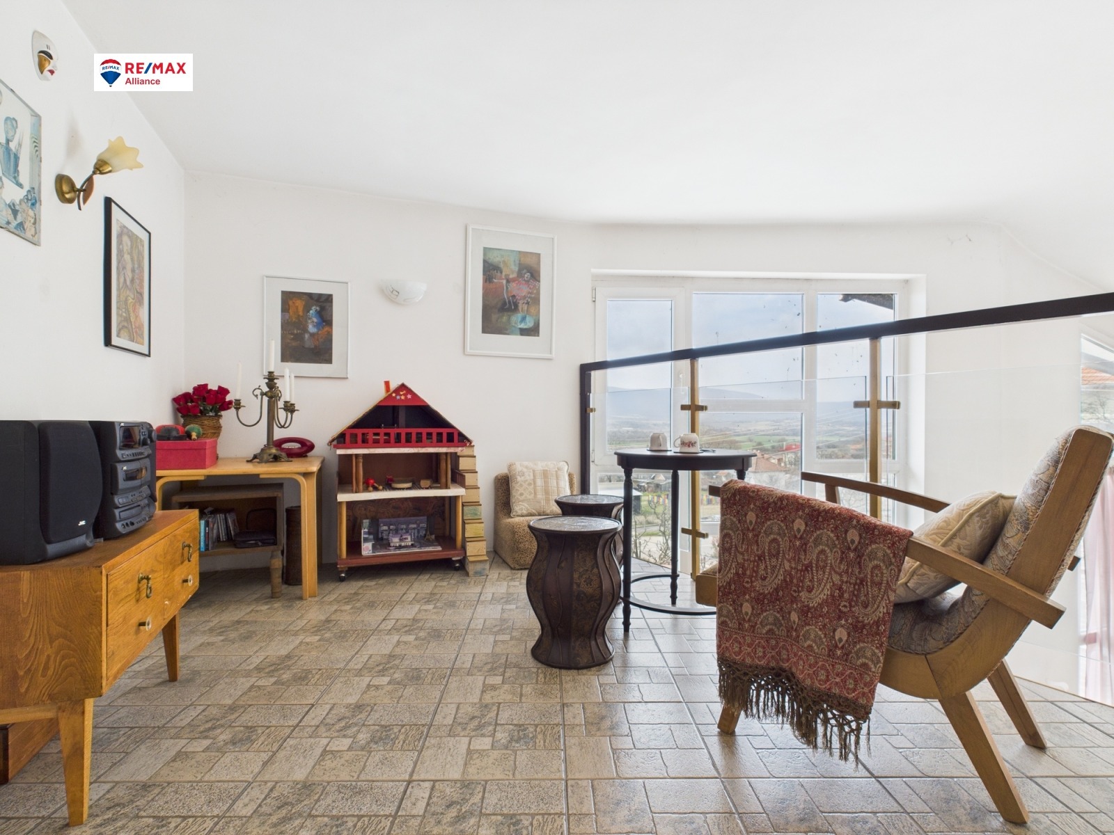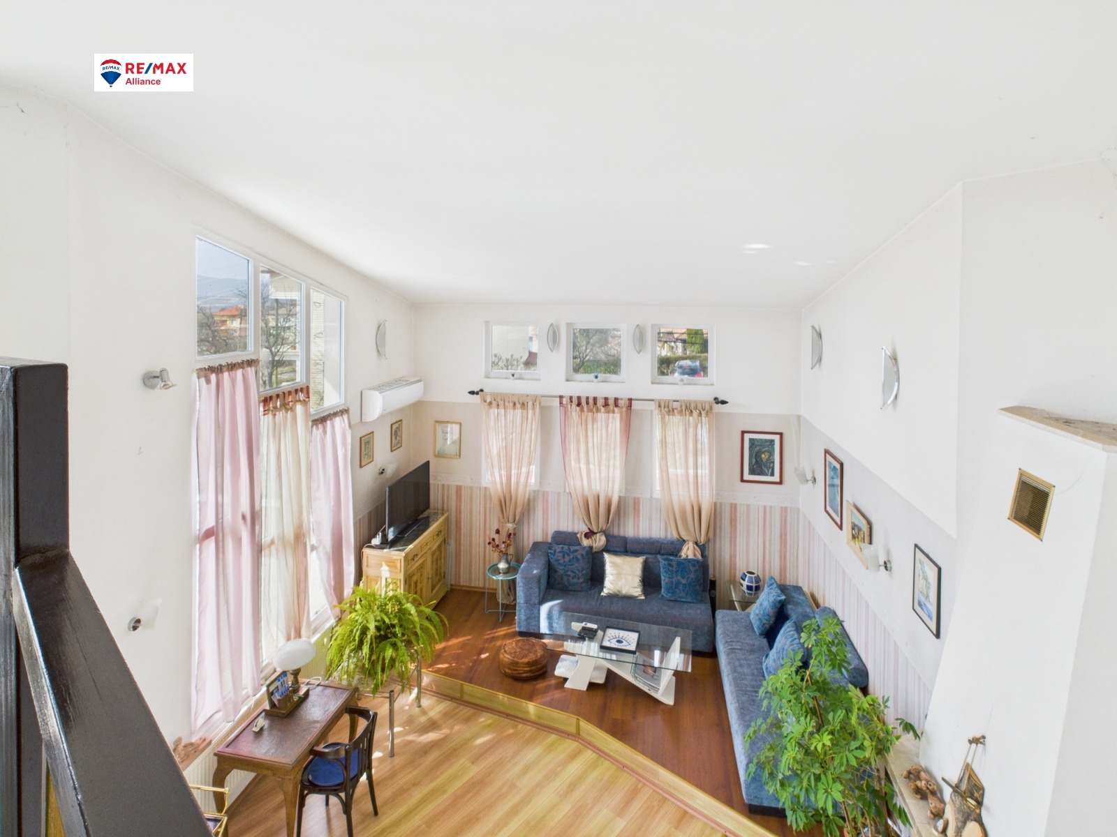 Емпоре към разкошен хол с камина, високи прозорци и висок таван - 5 м.!