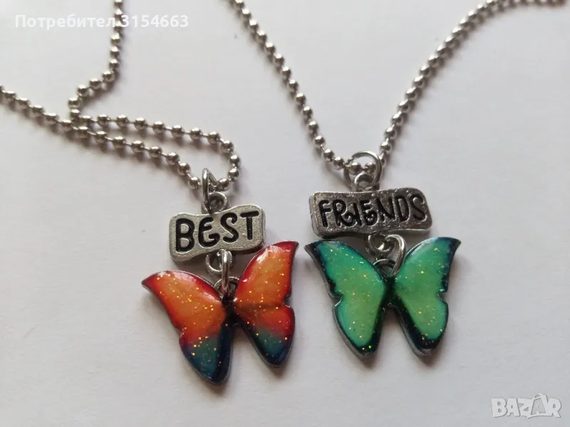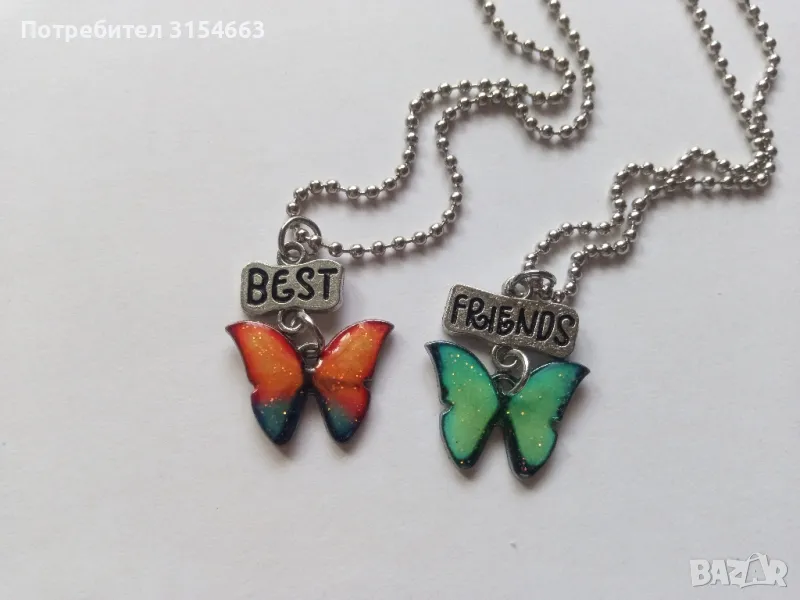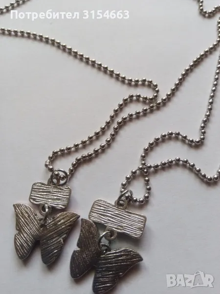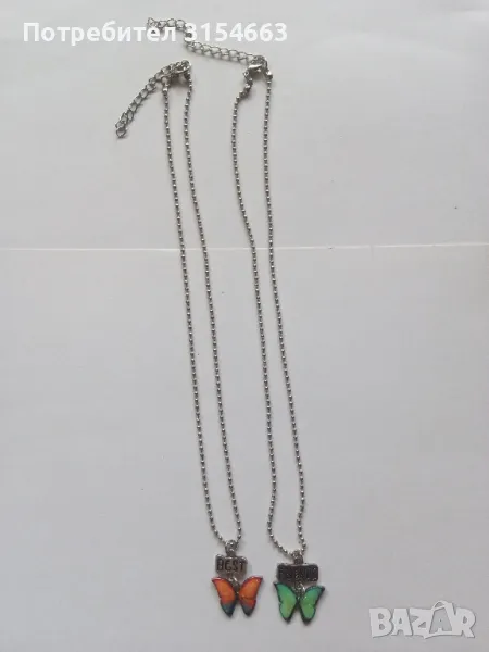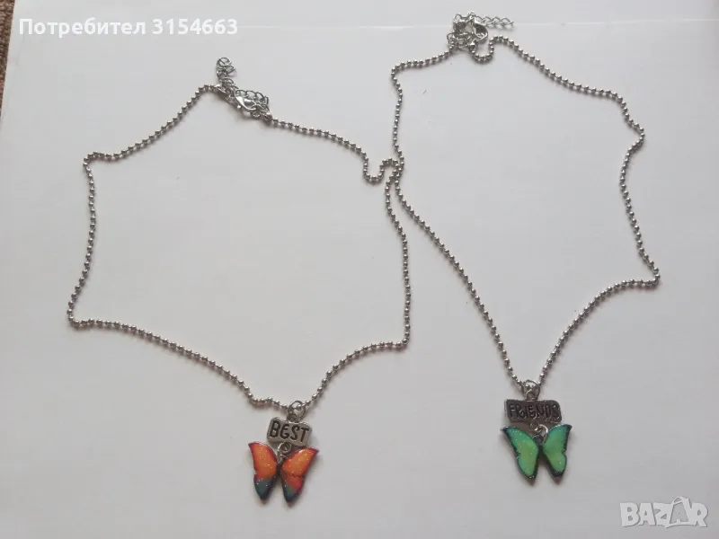 Комплект 2 колиета на приятелството с форма на пеперуда. Размери 35 мм на 20 мм. Верижката е с класическа закопчалка.