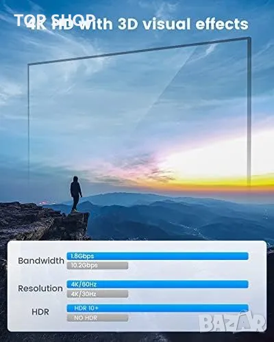 Поддържа резолюция 4K@60Hz и е обратно съвместим с други резолюции.