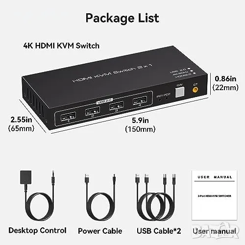 Нов 4K 60hz HDMI USB превключвател KVM превключвател 2PCs