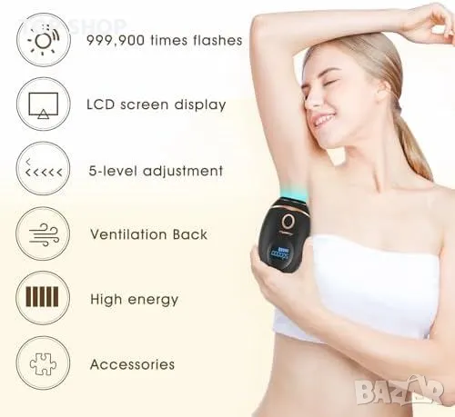 Нов Лазерен епилатор с 999900 светкавици и 5 нива за домашна употреба