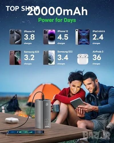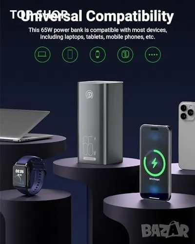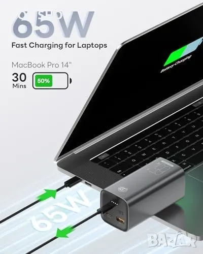 Мощност 65W: Преносима батерия 20000mAh с бързо PD 65W зареждане.