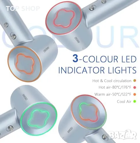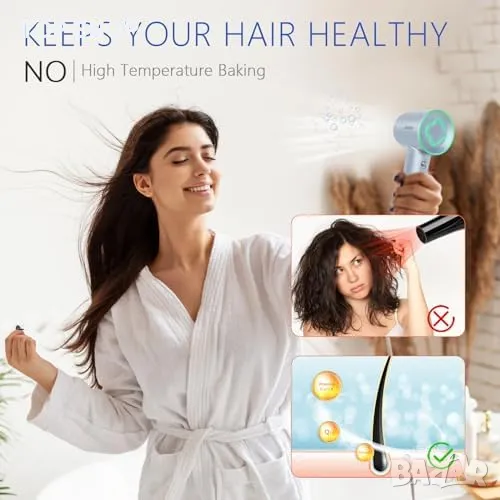 Тиха работа с Регулиране на температурата за защита на косата