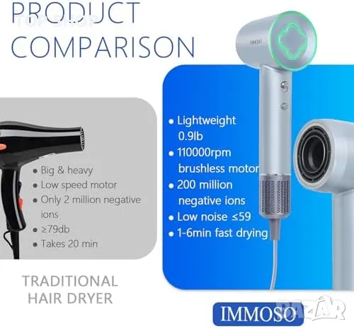 Нов Професионален Бързосушещ Сешоар 110000 об/мин Тих и Мощен → Обява 49498138