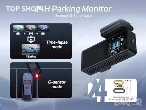 24-часов паркинг мониторинг – Автоматично записва инциденти дори когато колата е паркирана.