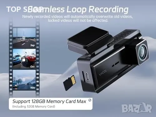 Функция Loop Recording – Продължаващ запис без прекъсване, със защита от презаписване.