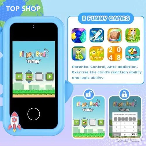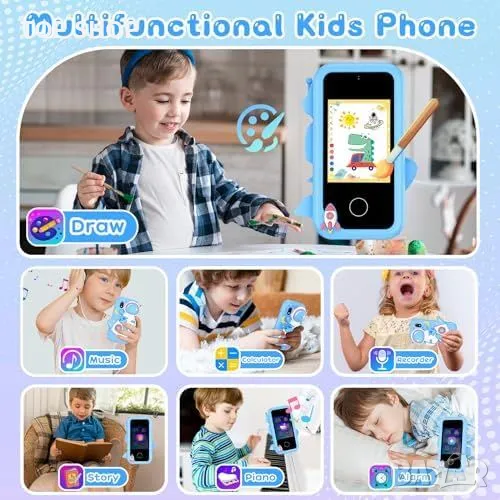 Нов Интерактивен Детски Телефон с Екран 2.8 Инча, MP3 Плеър, Игри играчка