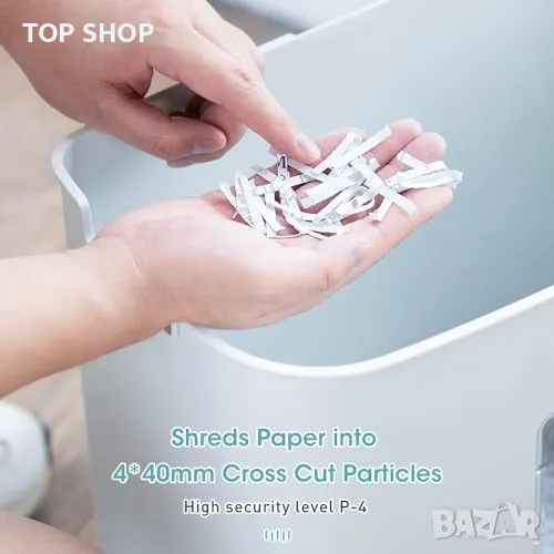 Висока Сигурност P4: Насича на малки парченца 4x40mm, подходящ за кредитни карти и телбоди.