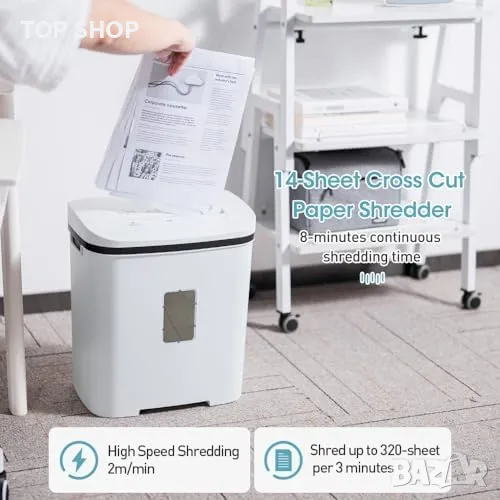 Нов Професионален Унищожител - 14 Листа, хартия, P4, Тих, Мобилен шредер