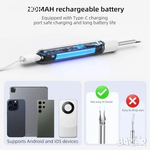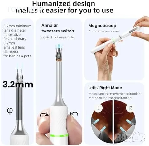 Безопасна и Ултратънка Леща: Ендоскоп с диаметър от 3.2мм, подходящ за деца, възрастни и домашни любимци.