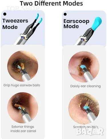 Мултифункционален Комплект за Почистване на Уши: Комплект с ендоскоп, пинцета и инструмент за вадене на ушна кал.