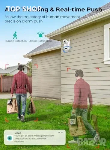 Нова 3K/6MP WiFi външна камера с автоматично проследяване и двупосочен звук → Обява 49498240