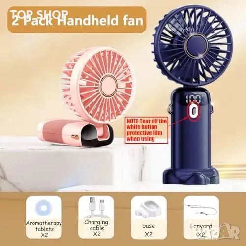 3-в-1 Дизайн: Използвайте като ръчен вентилатор, за врат или за бюро – подходящ за всякакви ситуации