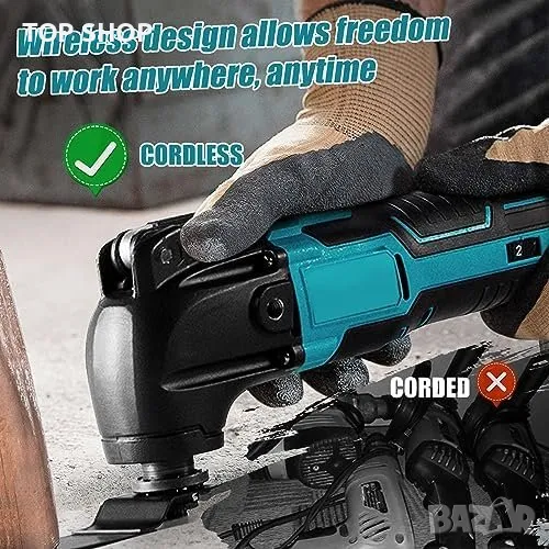 Универсалност: Безжичен осцилиращ инструмент за рязане, шпакловане, шлайфане, фрезоване.