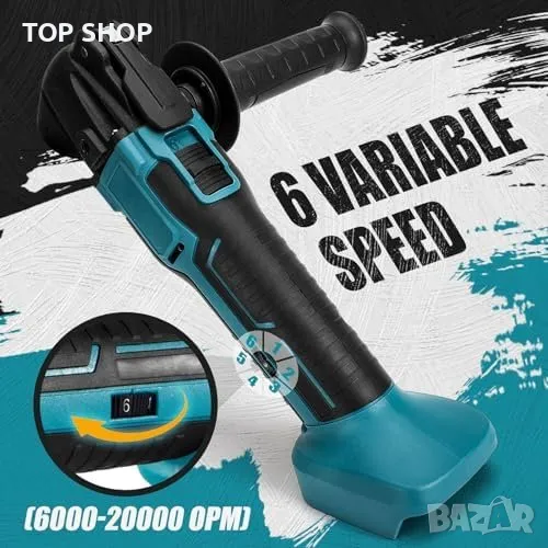 Безжичен и с безчетков мотор: Тежи 1.24 кг, мощност 500W, скорост 6000-20000 об/мин, 6 скорости.