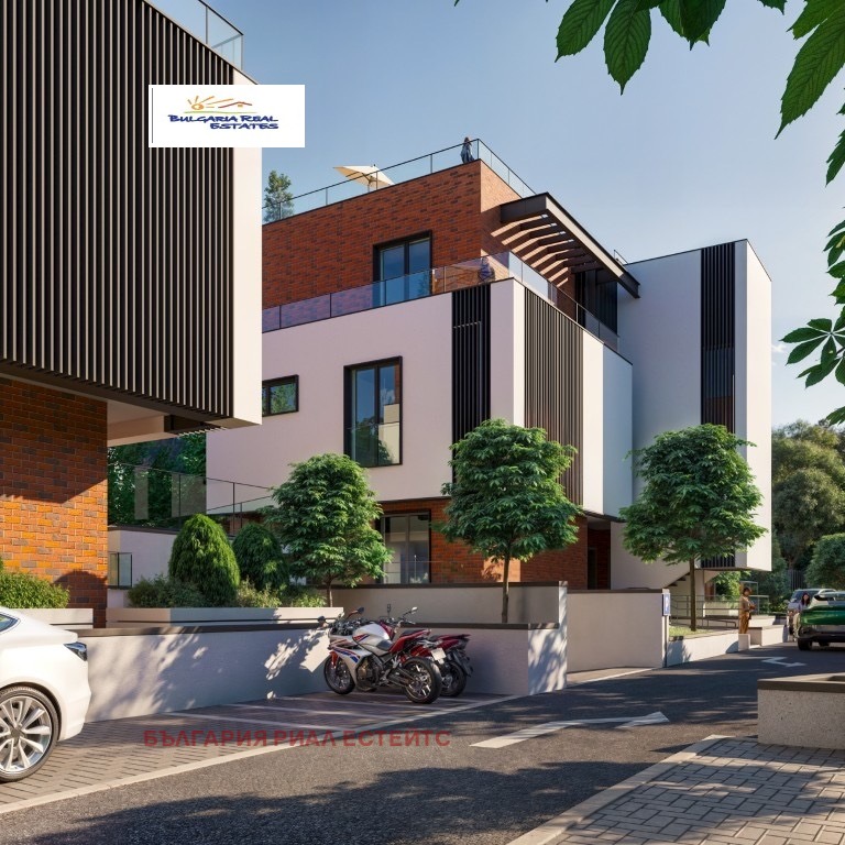 Сградата е с модерна визия, със светли фасадни елементи, които съчетават стъкло, дърво и естествен камък. За изграждането й са използвани висок клас материали, което гарантира комфорт и дълготрайност на имота.Фасадата е проектирана с големи прозорци, които осигуряват изобилие от естествена светлина в помещенията и разкриват прекрасна гледка към околните зелени площи и Витоша.