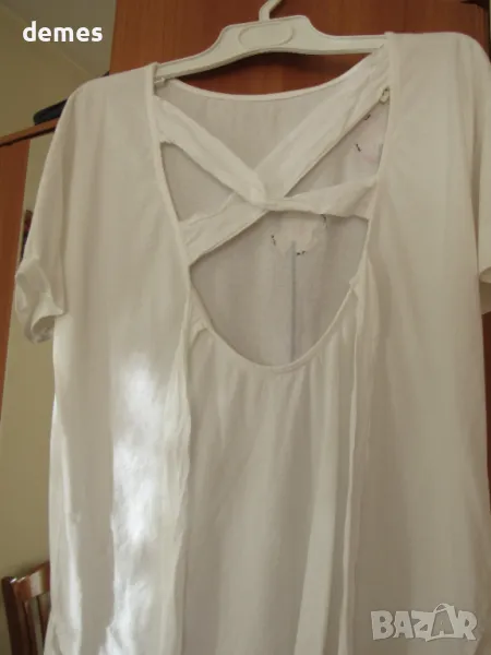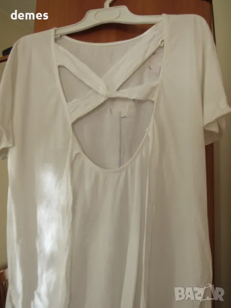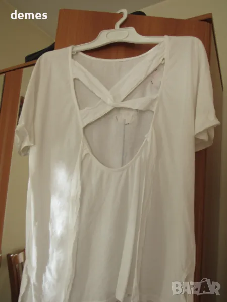 Моделът е с изрязан гръб и връзки на гърба, които завършват с панделка.