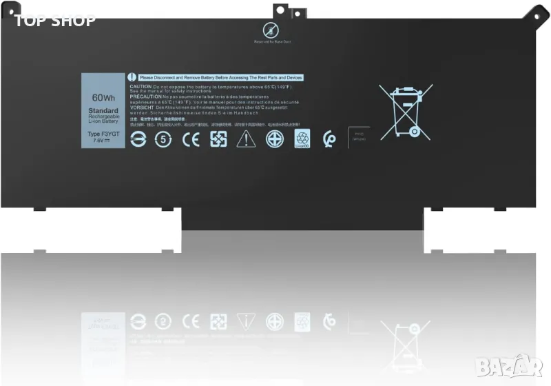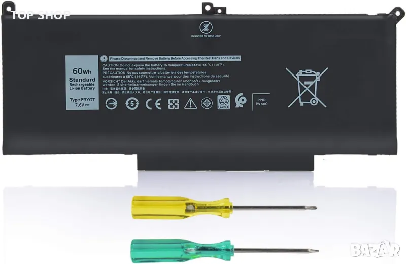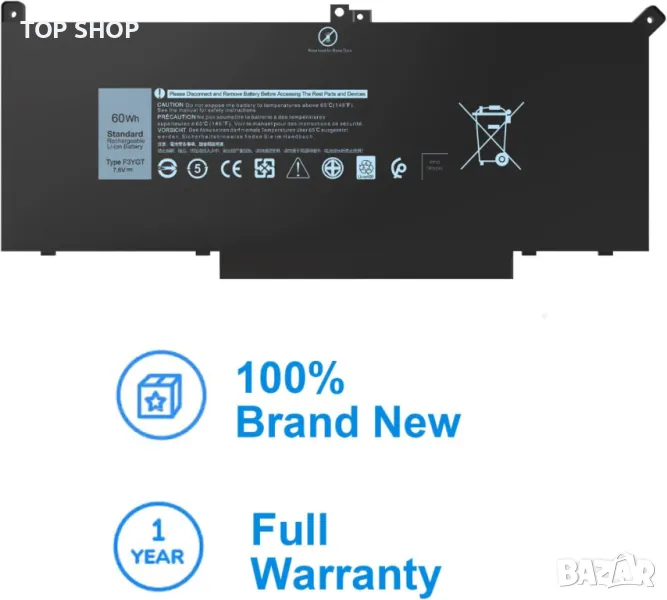 F3YGT Тип батерия - Li-Polymer; Капацитет: 60Wh; Клетки: 4-Клетки; Напрежение: 7.6V. Високопроизводителна резервна батерия Latitude, до 1000 цикъла на зареждане през целия живот на батерията.