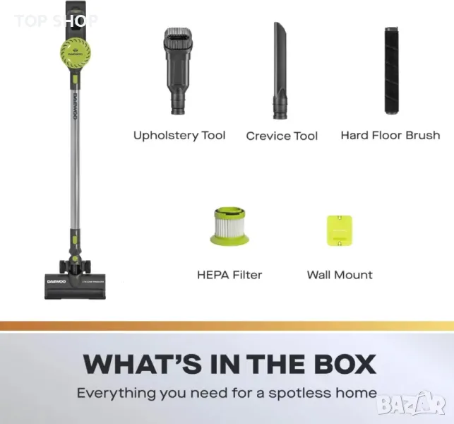 Безжична прахосмукачка Daewoo Cyclone Freedom 2 в 1, 35 минути
