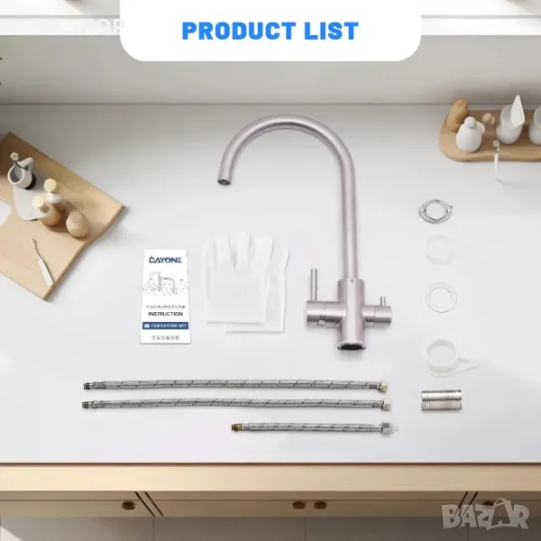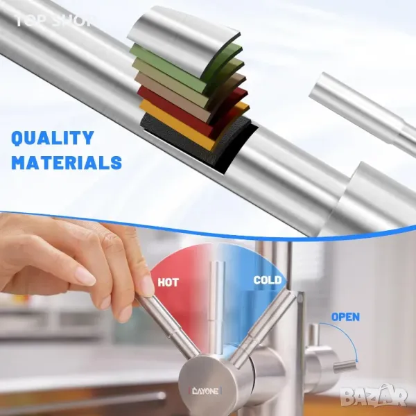 DAYONE 3 в 1 кухненски смесител с две ръкохватки, 360°