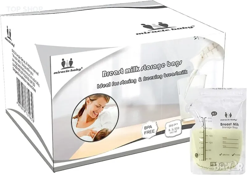 Моля използвайте системата за съобщения! Просто изпратете запитване. По телефона се губи време за уточняването на търсения от Вас продукт.Бебешки торби за съхранение на кърма Miracle, предварително стерилизирани, изработени от двуслоен материал, съчетан със здраво уплътнение с двоен цип. Достатъчното пространство позволява на майките да записват важни подробности като дата, час и други бележки. Прехвърлянето на мляко в бутилки е лесно, благодарение на удобен за употреба, широк накрайник за изливане. Дизайнът осигурява минимални загуби и предлага точни измервания.