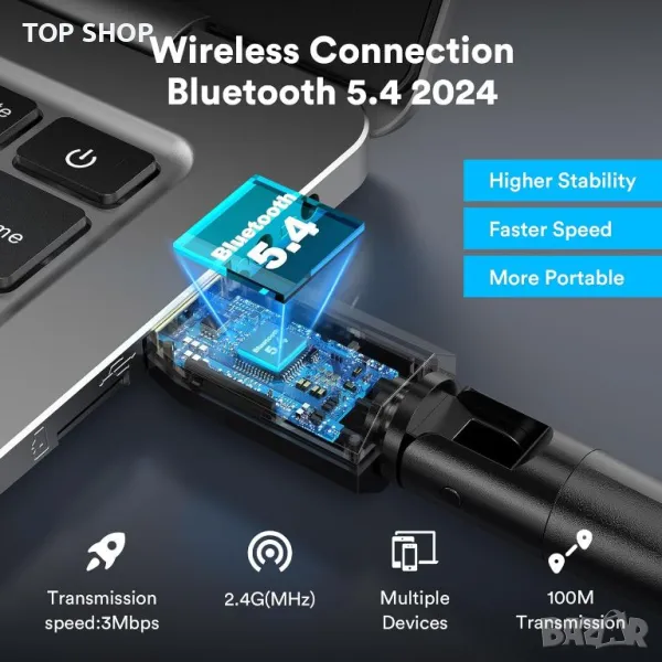 Bluetooth адаптерът 5.4 е съвместим с Windows 7 системи, но е необходимо изтегляне на драйвер. За Windows 11/10/8.1 предлага функция plug-and-play, позволяваща автоматично инсталиране за по-малко от минута. Той разполага с Bluetooth 5.4+EDR технология за подобрено предаване на данни и ниска консумация на енергия, обратно съвместим с Bluetooth 4.0/4.2/5.0/5.1/5.3. С висока съвместимост за 32/64-битови Windows 10/11/8.1, той поддържа едновременно свързване на до 7 устройства, включително слушалки, високоговорители, мишки и клавиатури. Не е съвместим с Mac IOS, Linux, TV или Car Stereo.