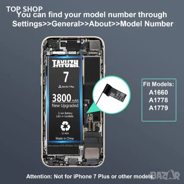 3800mAh Батерия за iPhone 7 TAYUZH, A1660, A1778, A1779 с ръководство за инсталиране