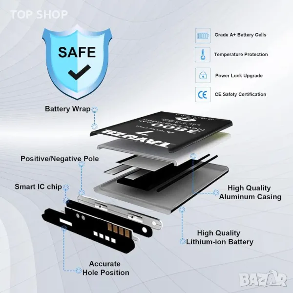 Резервна батерия за iPhone 7 (модел: A1660, A1778, A1779), гарантираща съвместимост с тези специфични модели. Изработена от батерийни клетки с клас A+, тя се подлага на строги тестове за контрол на качеството и разполага с вграден микрочип за защита срещу прекомерно зареждане, прекомерно разреждане, късо съединение и прегряване. С висок капацитет от 3800 mAh, той превъзхожда стандартните батерии, осигурявайки удължено време за използване. С 0 цикъла и до 1000 цикъла на зареждане, той обещава дълготрайност и ефективност. Обърнете внимание: Капацитет - 3800mAh, Напрежение - 3.8V. Следвайте внимателно инструкциите за монтаж и циклите на зареждане-разреждане за оптимална работа.