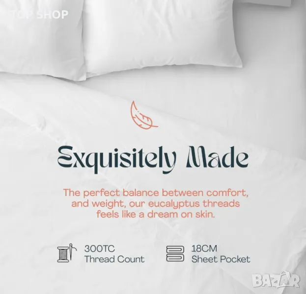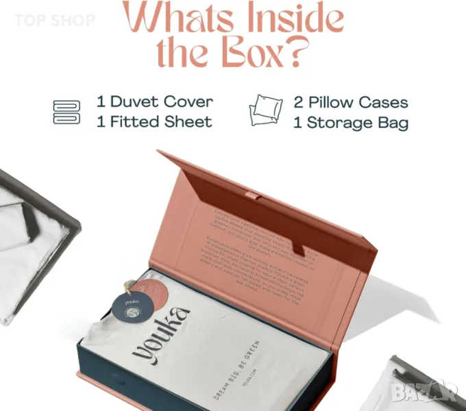 Изпитайте спокойствието на комплека спално бельо Youka Eucalyptus, предназначени да подобрят съня ви с техните абсорбиращи влага свойства. Изработени от 100% евкалиптов лиоцел, получен от сертифицирани гори, тези чаршафи предлагат несравним комфорт на охлаждане и способности за отвеждане на влагата. Те са по-меки от коприната и по-хладни от лена, като запазват луксозния си блясък при всяко пране. С чаршафи с 15" дълбоки джобове, включващи първокласен ластик, плъзгащите се чаршафи са нещо от миналото. Youka дава приоритет на устойчивостта, придържайки се към строги стандарти и осигурявайки хипоалергичен, естествено боядисан продукт, сертифициран от Oeko-Tex Standard 100. Насладете се на подмладяващ сън в хармония с природата.