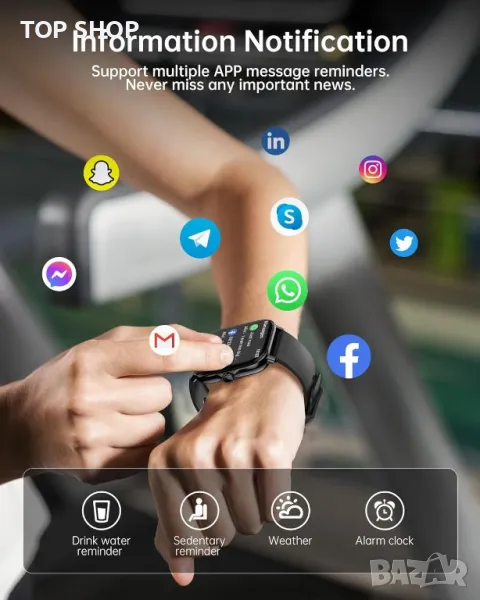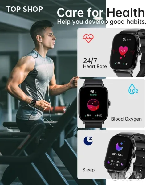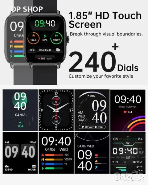 Този мъжки смарт часовник разполага с 1,85-инчов HD сензорен екран с над 240 персонализируеми циферблата, улесняващи безпроблемна навигация чрез контроли с докосване и плъзгане. Включва Bluetooth разговори с висококачествени високоговорители за обработка на повиквания и известия от основни приложения като WhatsApp, Facebook и Instagram. Допълнителните функции включват управление на музиката, прогнози за времето, напомняния за заседнал начин на живот, дистанционна камера, аларма и хронометър. Умният часовник поддържа 111+ спортни режима, сърдечен ритъм в реално време и мониторинг на кислорода в кръвта и проследява моделите на съня, за да подобри фитнес прозренията. Съвместим с iOS 10.0 и Android 9.0 или по-нова версия, той може да се похвали с бързо зареждаща се 270mAh батерия, която издържа до 7 дни или 30 дни в режим на готовност. Свържете се чрез приложението "FitCloudPro" за цялостно изживяване със смарт устройство.