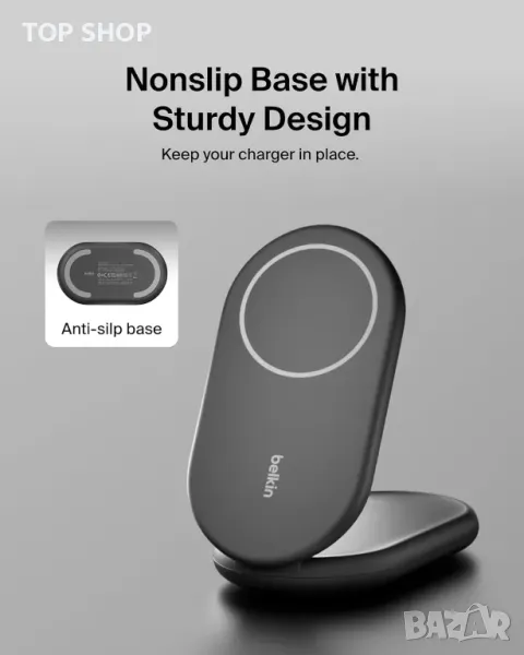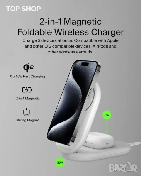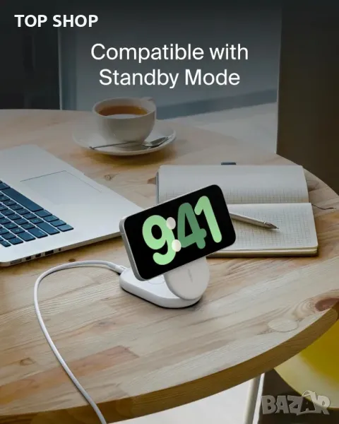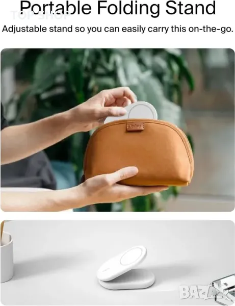 Заредете бързо своя iPhone или съвместимо с Qi2 устройство до 15 W с 2 пъти по-бързо безжично зареждане, благодарение на технологията Qi2. Сгъваемият дизайн служи и като преносима стойка, позволяваща регулируеми ъгли за удобно използване навсякъде. Изработен от първокласна течна силиконова гума, той предлага меко докосване, сигурно магнитно подравняване и здрава, неплъзгаща се основа с издръжлива панта. Потребителите на Apple могат да се насладят на режим StandBy, когато се използват като стойка, което го прави идеален за гледане на време и известия. Включва 20 W захранване и USB-C кабел за незабавна употреба и осигурява безопасно зареждане дори със съвместими с MagSafe калъфи до 3 mm.