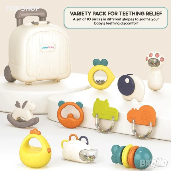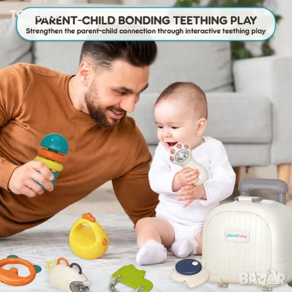 PiccaBaby Комплект гризалки и дрънкалки за бебета с калъф за носене, без бисфенол А