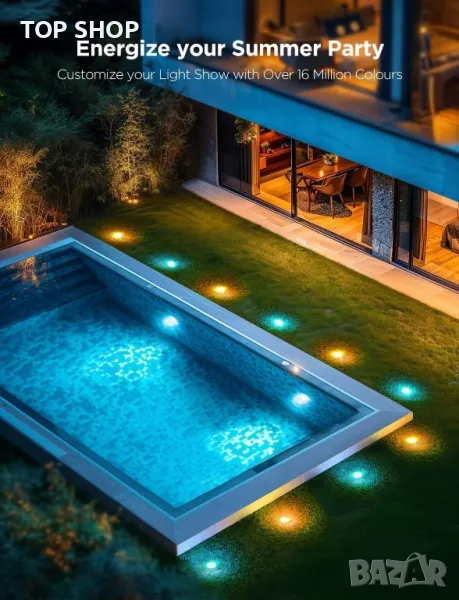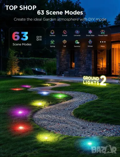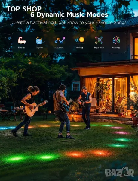 Govee 15m предлагат разнообразни опции за управление чрез WiFi и Bluetooth, както и гласово активиране чрез Alexa и Google Assistant, идеални за работа със свободни ръце по време на партита. Отличаващи се с технологията RGBIC, тези светлини за пътеки поддържат 16 милиона цвята и 63 режима на сцена, заедно с режим за синхронизиране на музика, който подравнява светлинните ефекти с музикалните ритми за оживени събирания на открито. Уникалният дизайн на рефлектора разширява светлинния ефект, подобрявайки външната атмосфера, докато усъвършенстваната IP67 хидроизолация за светлините и захранването, заедно със сертифицирана по IP44 контролна кутия, гарантира издръжливост при всякакви метеорологични условия.