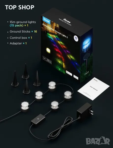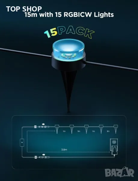 Govee външни лампи за пътека 15m, IP67, RGBIC, 100 лумена, 15 броя