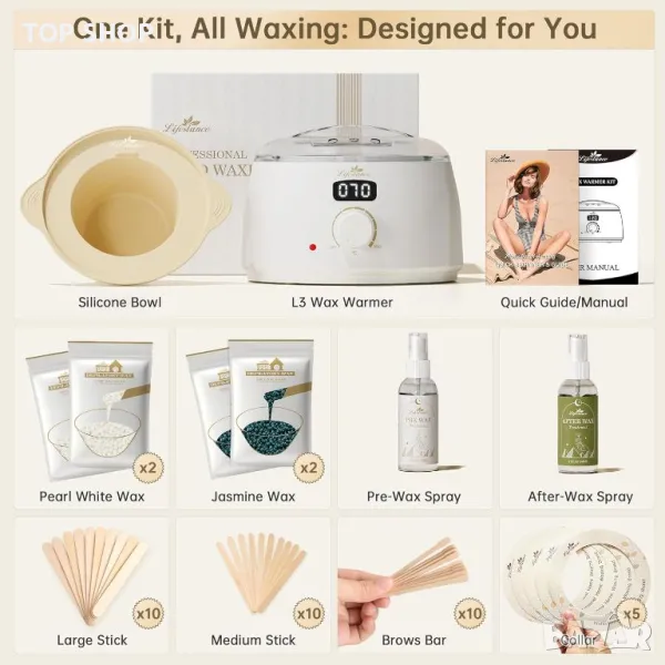 Lifestance L3 Комплект цифров нагревател за кола маска за епилация, 4 бр. восъчни перли, 45 артикула