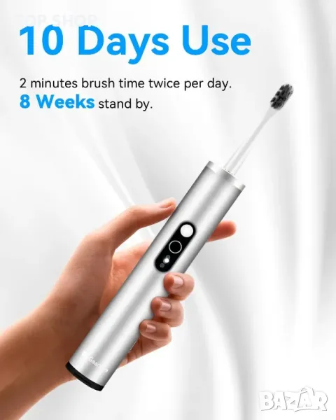 Лека и изключително преносима, тази четка за зъби разполага с прибираща се глава за хигиена и лесно съхранение, което я прави идеална за пътуване, бизнес пътувания и употреба на открито. Включва USB Type-C кабел за зареждане за удобно зареждане навсякъде. Вграденият UV стерилизатор елиминира до 99,9% от бактериите, осигурявайки чиста глава на четката. Три режима на почистване - леко почистване, дълбоко почистване и избелване на зъбите - отговарят на различни нужди от грижа за устната кухина. Усъвършенстваните графенови влакна предлагат антибактериална защита за по-здрави зъби и венци. С водоустойчив рейтинг IPX7, той може да се мие напълно и е безопасен за използване под душа. Елегантната метална матирана обвивка добавя първокласно докосване.