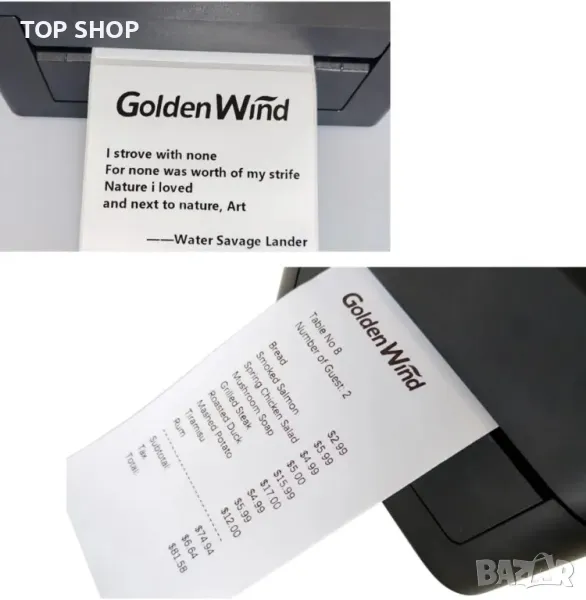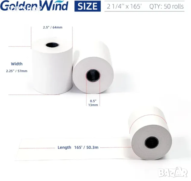 50 ролки, термохартия GOLDEN WIND 2 1/4 x 165 фута, 55GSM първокласно качество, бяла, 57 * 64 mm