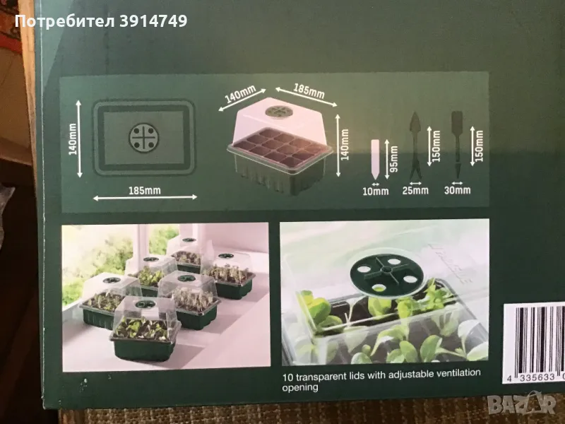 Комплект 10 разсадници / мини оранжерии за разсад, 12 гнезда, висок дишащ капак, НОВ → Обява 49501151
