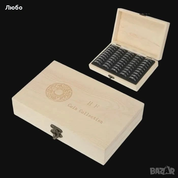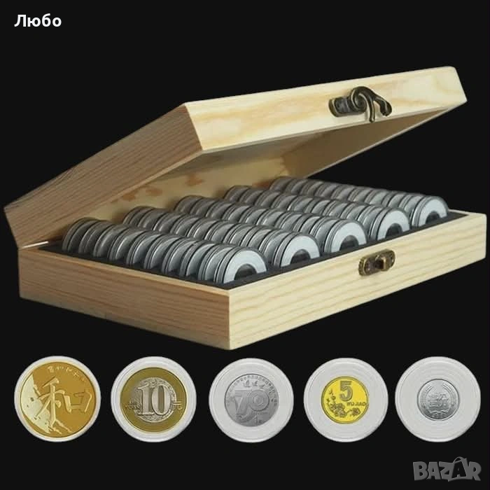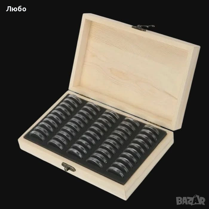 Дървена кутия за 100/50 монети (с 100/50 капсули и уплътнители) → Обява 49502896