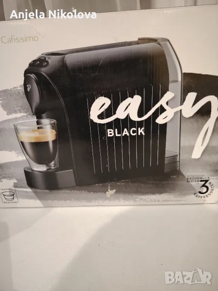Кафемашина с капсули Tchibo Cafissimo easy Black, 1250 W, 3 степени на налягане, 650 мл, Еспресо, Крем кафе, Отделение за капсули, ЧернаНовогодишен подарък, само пробвана 2-3 пъти, тъй като имаме друга. В магазините е над 250 лв. Моята цена е 130 лв.