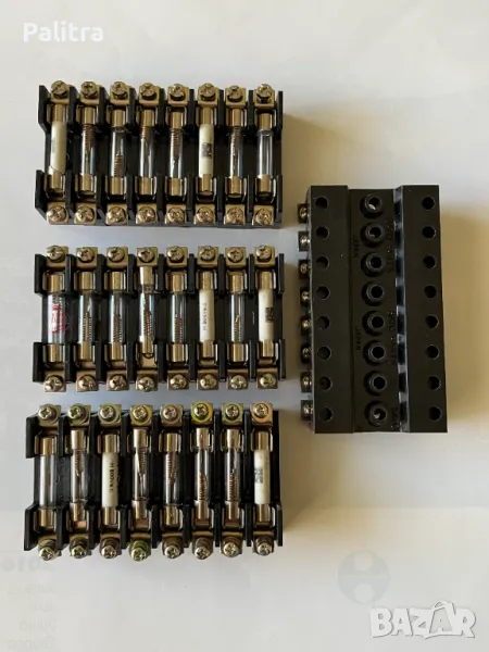 Осем гнездови носачи на стъклени електрически предпазители 6.3х32, комплектовани с разнообразни предпазители