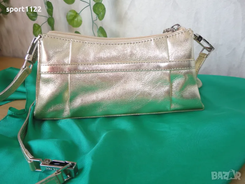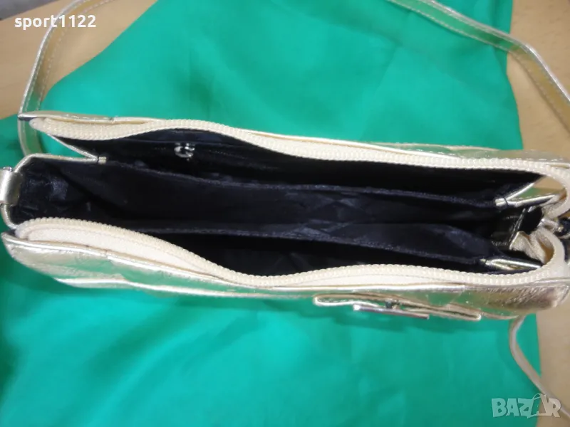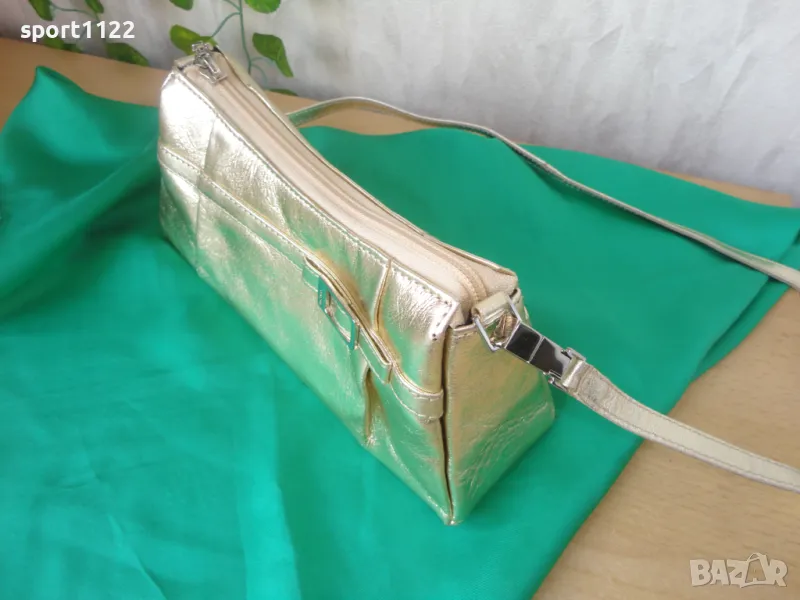 Belsac - малка чантичка, естествена кожа, златист цвят. Неупотребявана. Има три отделения и един вътрешен джоб. Дръжката е от две части и може да се комбинира като къса и дълга.