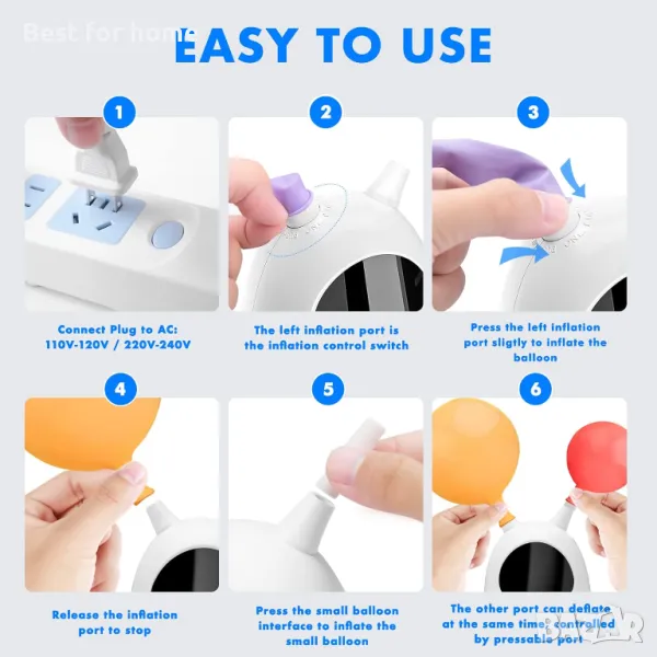 【Лесен за използване】Просто натиснете дюзата за надуване надолу, за да стартирате помпата и да надуете балона, освободете дюзата, когато балонът стане правилния размер, лесно и ефективно.