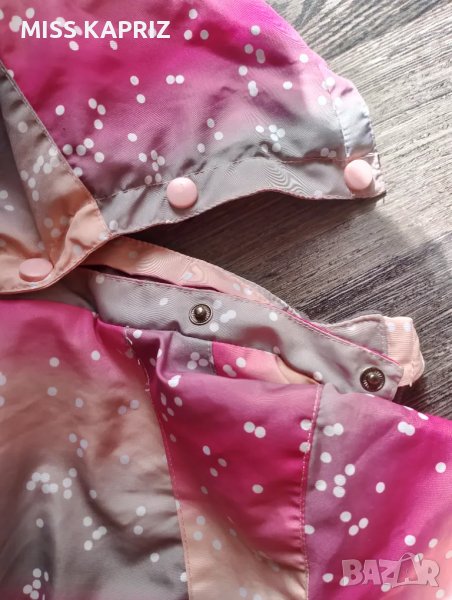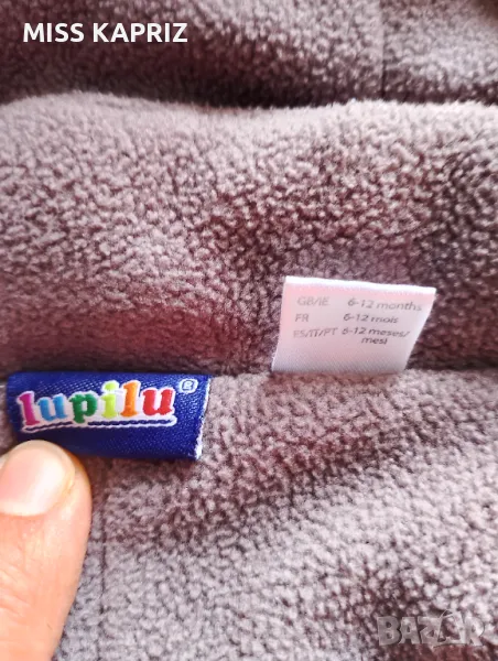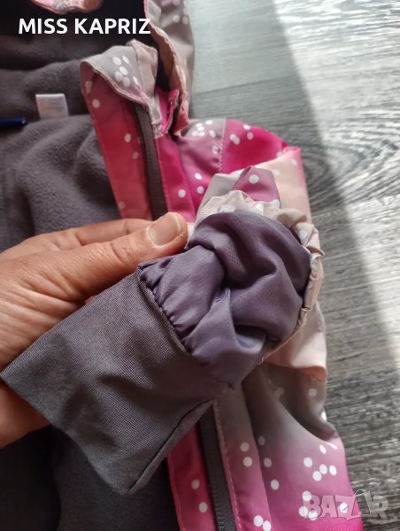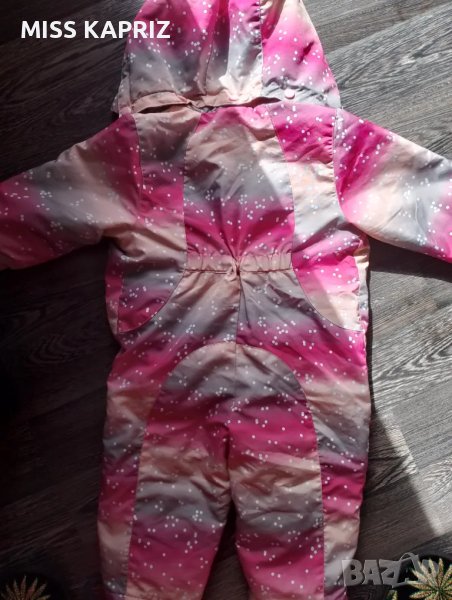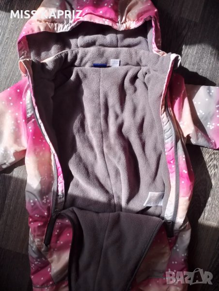 Космонавт за момиче 6-12м LUPILU, закопчаване с два ципа с предпазител, поларена подплата, ластични маншети на ръкавите и крачола и регулиране на крачола . Качулката се сваля.