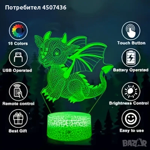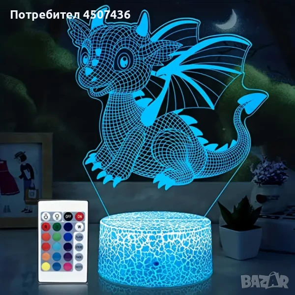 Холограмна 3D LED лампа Дино-дистанционно управление 16 цвята+други режими на управление